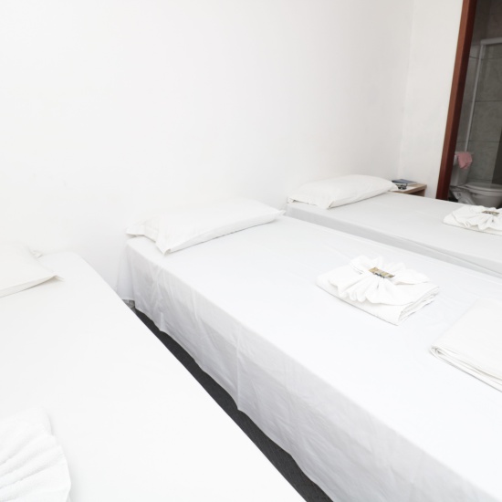Nosso compromisso com o conforto e a hospitalidade ganha vida em nossos quartos quintuplos no Hotel Linhares. Projetados para acomodar grupos de cinco pessoas,(em dois quartos conjugados sendo um (01) quarto casal e outro quarto com três (03) camas)essas acomodações oferecem uma experiência única de estadia. Com amplo espaço e atenção aos detalhes, garantimos que cada hóspede desfrute de privacidade e comodidade. Reserve agora para viver momentos memoráveis em uma atmosfera onde o conforto e a qualidade se encontram.