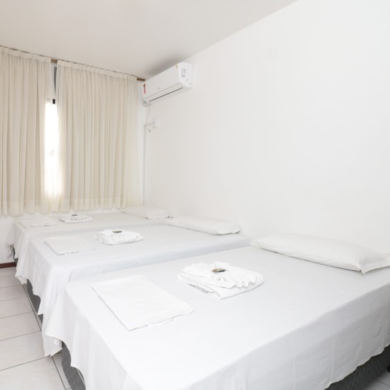 Em nossos quartos triplos no Hotel Linhares, oferecemos o espaço perfeito para grupos de três pessoas desfrutarem de uma estadia aconchegante e descontraída. Nossas acomodações são cuidadosamente projetadas para proporcionar conforto e praticidade. Reserve agora e experimente a combinação ideal de acomodações espaçosas e uma atmosfera acolhedora, garantindo uma estadia agradável para você e seus companheiros de viagem.